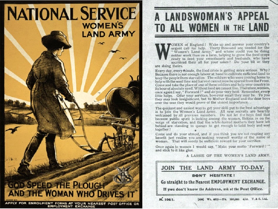 Not just whispering to her boyfriend. “There’s not enough labour at hand to cultivate sufficient land to keep people from starvation.” Recruitment ads for the Women’s Land Army in England during World War I.