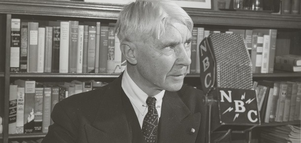 Carl Sandburg. From the size of it, that microphone looks like it could be steam-powered too.