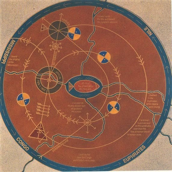 Full circle. After Hughes died in 1967 his ashes were interred in the the middle of this mosaic depicting “The Negro Speaks of Rivers” on the floor the lobby of the Schomburg Center for Research in Black Culture in New York.