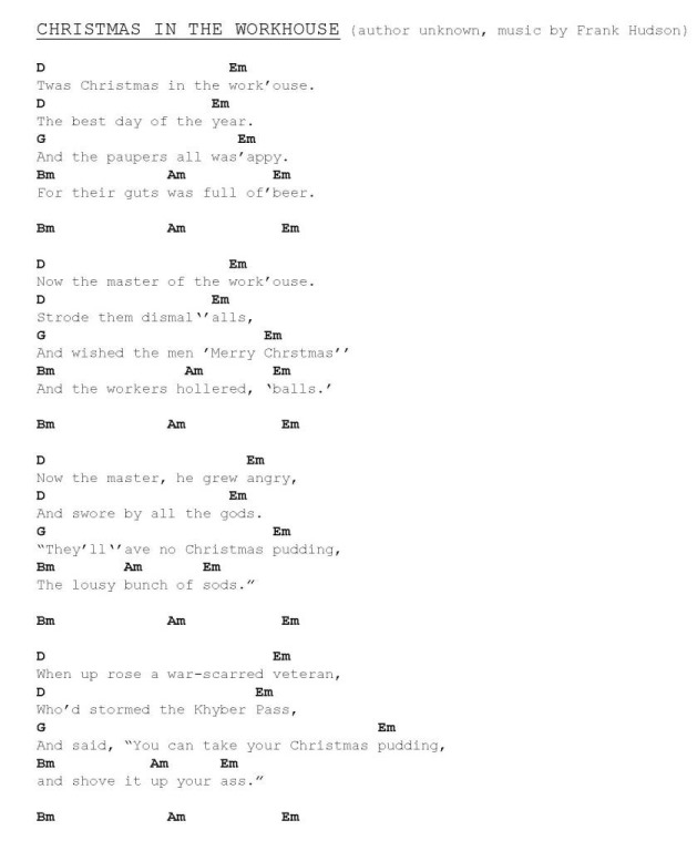 Here’s a chord sheet in case you want to form your own workhouse chorus to sing this one