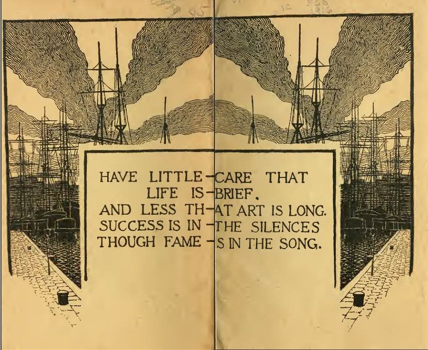 His Songs of Vagabondia struck a carefree chord in its time. Tennyson, Longfellow, or Robert Browning would have presented a very serious life that should be attended to. The Vagabondia poems, with intent, fail the Sandburg Test I’ve proposed to assay poetry collections. If my beginning-of-Summer cover song asked the listener to indulge in “That Summer Feeling,” these poems concur. There’s no Winter and barely an Autumn there. No work or studies either. Instead, we have flirtations and libations, the comradeship of likeminded friends, and here the open road and heart are spent without anything much in one’s purse or paycheck.