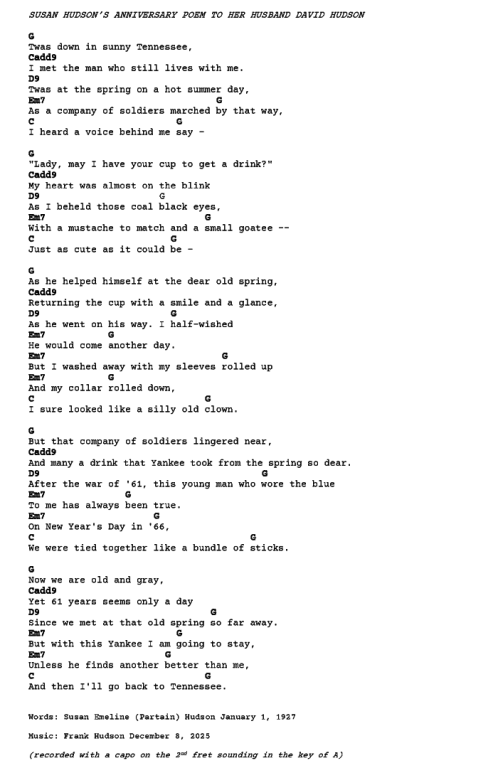 Susan’s poem in chords-sheet form for those who’d like to sing it themselves.