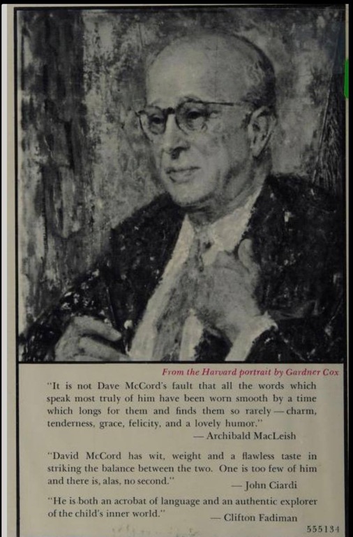 A picture and blurbs from a children’s poetry book of McCord’s from later in the 20th century.