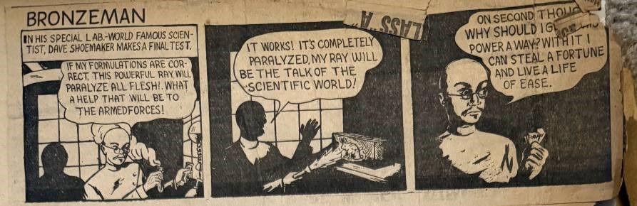 Two other pictures in the scrapbook seem to tell some kind of story about connections between the races, likely in Minneapolis in the ‘50s. There’s this snapshot, pasted on the same page as the similarly posed picture I speculated last time might be of a child of the Hazletts. I have no idea who Maxine is, or who’s Chuck. But as with the other pictures and accounts in today’s post, I’d reckon that mixed race connections like this had elements of risk beyond just social disapprobation. White school integration riots, Emmett Till, the beating and burning of the Freedom Riders buses, all were contemporary with the scrapbook.