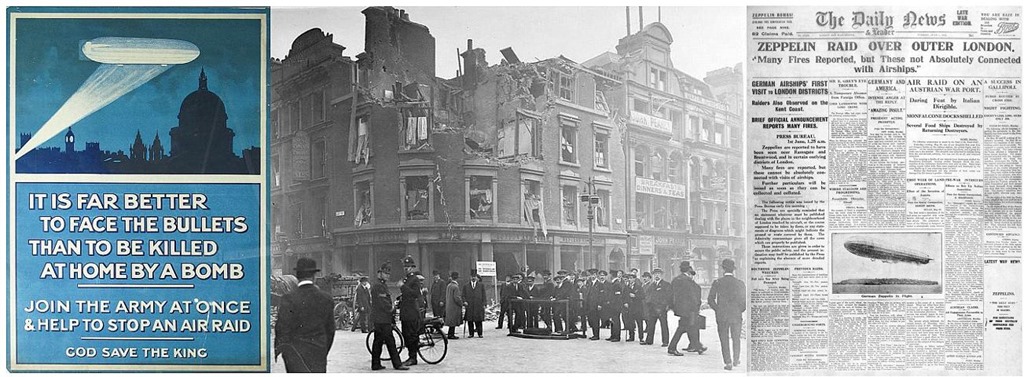 Besides being present at the birth of Modernist English poetry, Flint also was in the right place to witness another Modernist invention: aerial bombardment of cities. It’s little remembered now, but nighttime terror bombing of London was not an invention of Hitler’s air force in WWII—it was, instead, first carried out by Zeppelin airships in World War I.