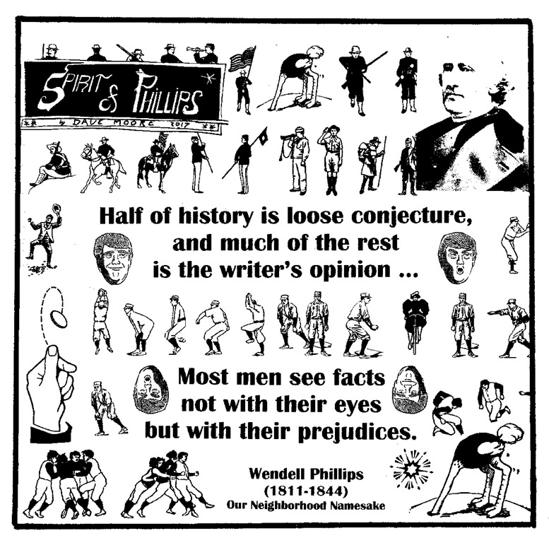 Dave Moore is also a cartoonist. His “Spirit of Phillips” reinvigorates the work of radical Abolitionist Wendell Phillips.